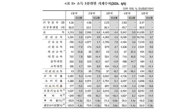 소득 5분위별로 보면, 소득 상위 20%에 해당하는 5분위의 소득이 1,119만 9천 원으로 3.7% 증가했습니다.
