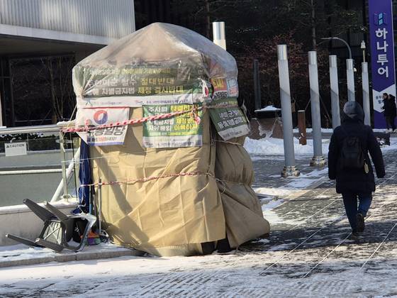 지난 21일 땅 소유주 측 요구로 잠시 천막이 철거됐던 모습