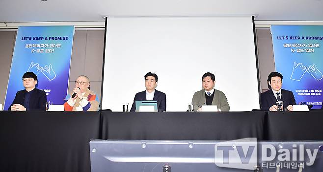 한매연, 연제협, 음레협, 음산협, 음콘협 등은 27일 오전 서울 서초구에 위치한 반포 JW메리어트호텔 서울 3층, 살롱1+2+3에서 ‘렛츠 킵 어 프로미스(Let’s keep a promis) : 음반제작자가 없다면 K-팝도 없다’란 타이틀로 기자회견을 열었다.