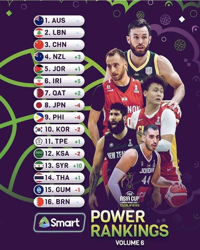 FIBA(국제농구연맹)는 25일 공식 홈페이지를 통해 2025 FIBA 아시아컵 예선 파워 랭킹 Volume 6를 공개했다.