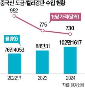 동국씨엠은 저가 중국산 컬러강판이 무분별하게 국내로 유입되고 있다고 봤다. 과잉 생산에 경기 악화로 중국 내 수요가 줄자 가까운 한국으로 가격을 낮춰 밀어내기 수출에 나섰다는 것이다. 국내에서 중국산 컬러강판 가격은 지난해 기준 t당 105만원(약 730달러)으로 국산(149만원)보다 30% 싸다. 낮은 가격을 무기로 한 중국산 컬러강판 수입 물량은 작년 102만t으로 2022년(76만t)보다 약 34% 늘었다. 이제 국내 컬러강판 판매(280만t)의 3분의 1이 중국산이다.