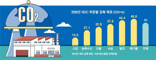 지난 2030 NDC상 발전 부문 감축 목표는 2018년 대비 44%였다.