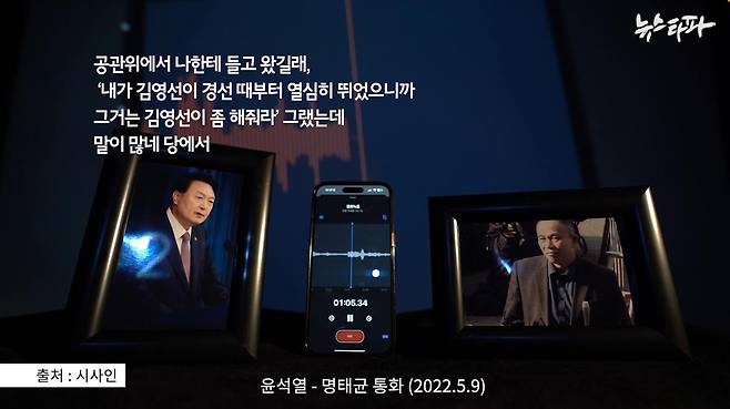 명태균 : 내가 대통령(에게) 전화한 거 아니? 내가 가만히 있을 놈이 아니잖아. (김건희) 사모하고 전화해 하지고, 대통령에게 전화해 가지고, 대통령이 ‘나는 김영선이라고 했는데?’ 이러대.