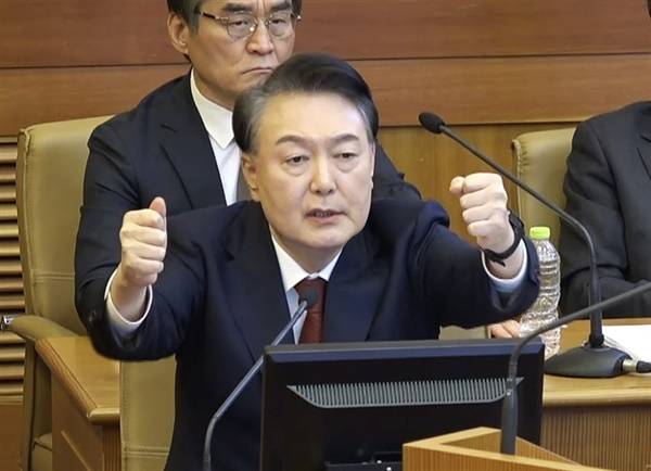| ▲ 내란 우두머리 혐의로 구속된 윤석열 대통령이 11일 서울 종로구 헌법재판소에서 열린 탄핵 심판 7차 변론에서 발언하고 있다. |