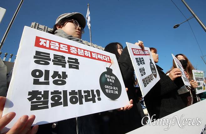 학생들 "등록금 인상 투명한 공시 요구"