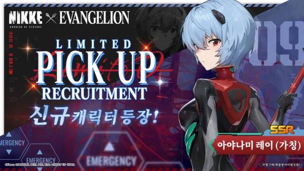 레벨 인피니트가 '승리의 여신: 니케'에 에반게리온 2차 컬래버레이션 캐릭터 '아야나미 레이(가칭)(이하 레이)'를 출시했다. 소총을 사용하는 풍압 코드 캐릭터이며, 3버스트 화력형이다.
