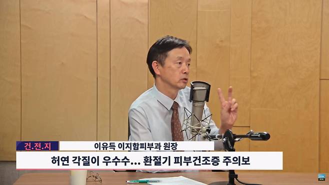 ◇ 이익선 : 건강을 전하는 지식 <건.전.지> 오늘은 이지함 피부과의 원조 원장님이시죠. 이유득 원장님 함께 피부 건조증에 대한 얘기를 나누고 있는데요. 저희가 광고나가는 동안 사진을 보여드렸고 역시 아까 말씀하신 것과 동일하게 이거는 진료받으셔야 된다고 답을 주셨어요.