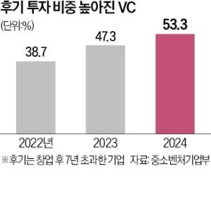 지난해 국내 벤처투자금 절반이 창업한 지 7년이 넘은 기업에 쏠렸다.