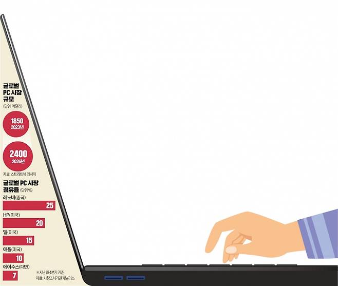 삼성전자와 LG전자도 AI PC 시대를 맞아 반전의 계기를 찾는다는 계획이다. 삼성은 지난해 하반기 출시한 갤럭시북5 프로 360으로 점유율을 끌어올린다는 목표를 세웠다. LG전자도 AI 기능을 강화한 ‘그램AI’로 도전장을 내밀 계획이다.