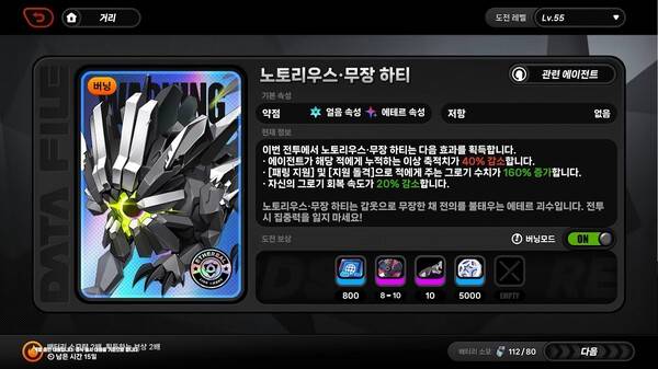 전문가 도전룸: 현재 진행 중인 독점 채널에 한정 S급 에이전트 육성에 필요한 재료에 따라 주기적으로 상응하는 스테이지의 버닝 모드 오픈. 해당 모드에서는 배터리를 2배로 소모하지만 보상도 2배로 늘어난다.
