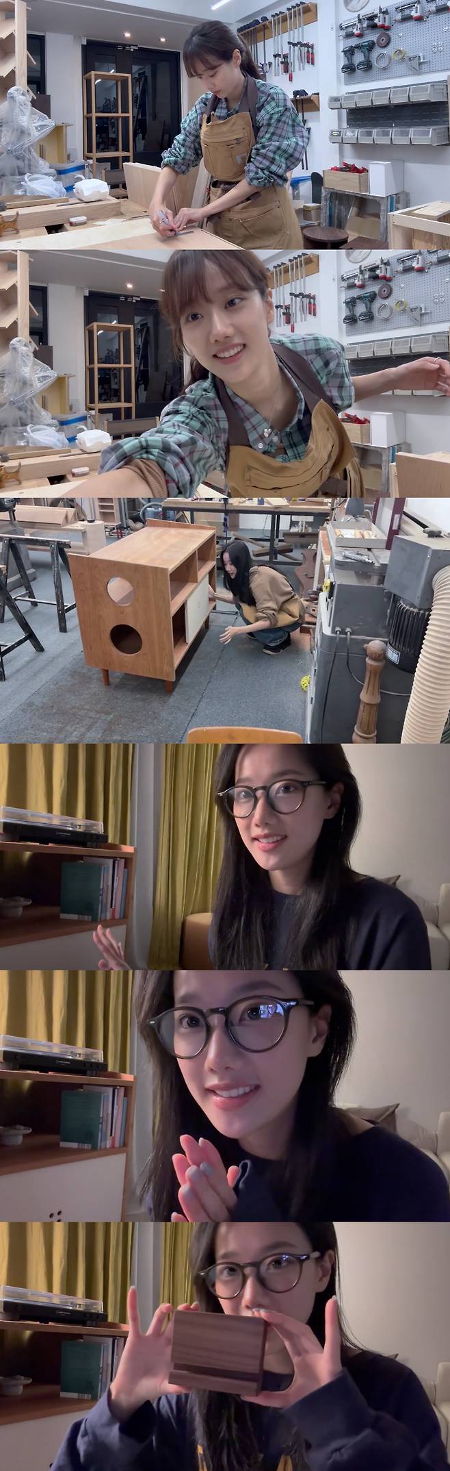 해당 영상 속 이나은은 "Making my first furniture(나의 첫번째 가구 만들기)"라며 취미로 가구를 만들고 있는 일상을 공개했다.