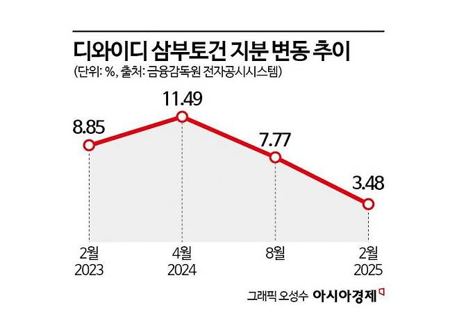 결국 디와이디는 각종 차입금과 부채를 견디지 못하고 지난해 8월부터 삼부토건 지분을 계속 처분했다. 기존 11.49%였던 디와이디의 삼부토건 지분은 현재 3.48%까지 떨어진 상태다. 재무상황이 극도로 악화된데다 삼부토건에서 연결 손실까지 발생하면서 정리절차를 밟게 된 것이다. 지난달 31일에는 임시주주총회를 개최해 사업 목적에서 건설업과 관련된 사업목적 전체를 삭제하는 정관변경도 단행했다.