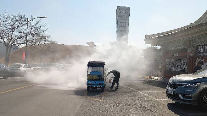 어제(28일) 오후 2시쯤 경북 경주시 황오동의 한 도로에서 전동 차량에 불이 났습니다.