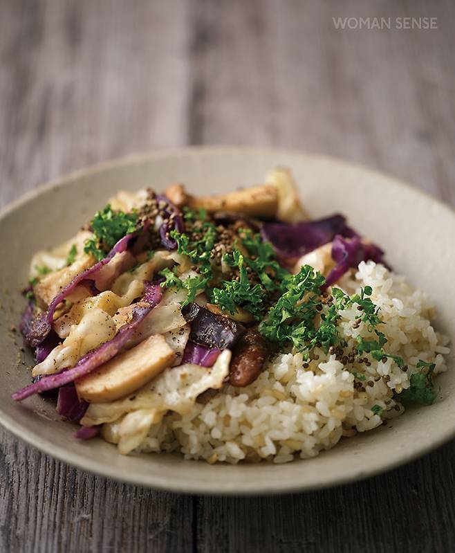 염증을 잡아주는 된장소스 양배추버섯 덮밥 레시피