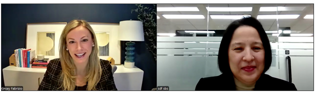 <지난 12일 인터뷰 중인 CTA 킨제이 파브리지오 사장과 SBS 이정애 미래부장>