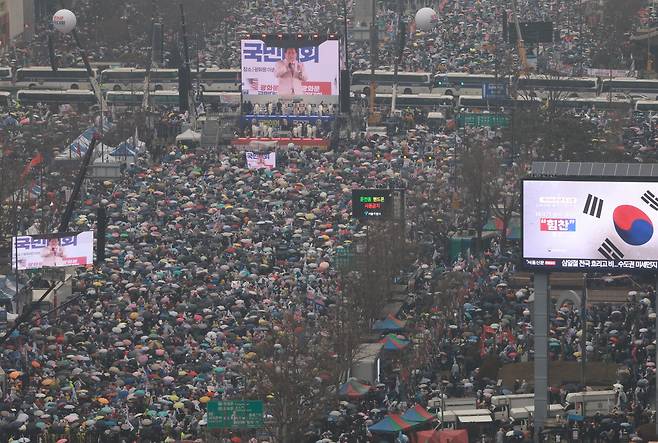 | ▲ 1일 서울 세종대로에서 대한민국바로세우기국민운동본부가 윤석열 대통령 탄핵 반대 집회를 하고 있다. |