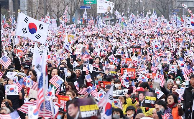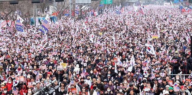 [포토] 세종대로 가득 메운 탄핵 반대 집회