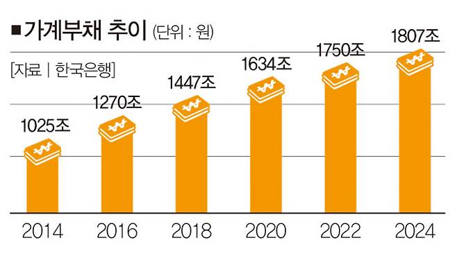 굳이 경매까지 언급하지 않아도 됩니다. 한국 경제의 시한폭탄인 가계부채 문제가 도사리고 있으니까요. 한은 통계에 따르면 우리나라 가계대출(판매신용 제외)은 2014년(1025조0762억) 처음으로 1000조원을 넘은 이후 꾸준히 늘어나 2024년엔 1806조9975억원을 기록했습니다. 매년 78조원 이상 증가한 셈입니다.