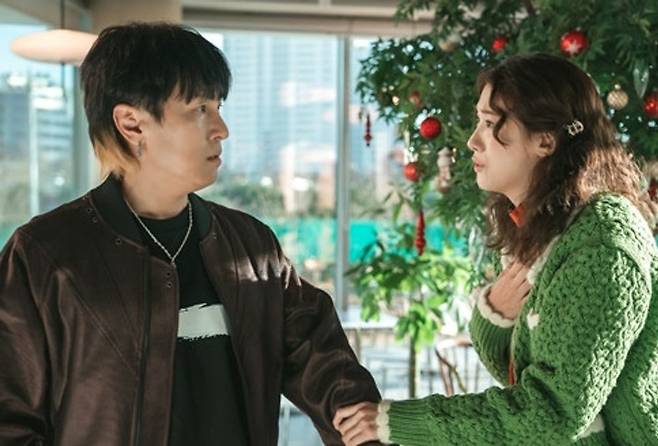 이와 달리 흥수는 귀찮다는 표정으로 옥분을 응시, 극과 극 텐션을 오가는 두 사람에 시선이 집중된다.