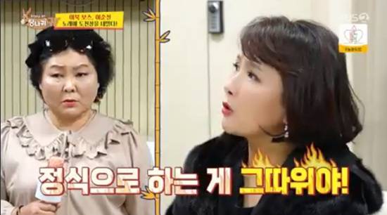 이순실이 음치, 박치임에도 불구하고 노래 도전을 선언했다.