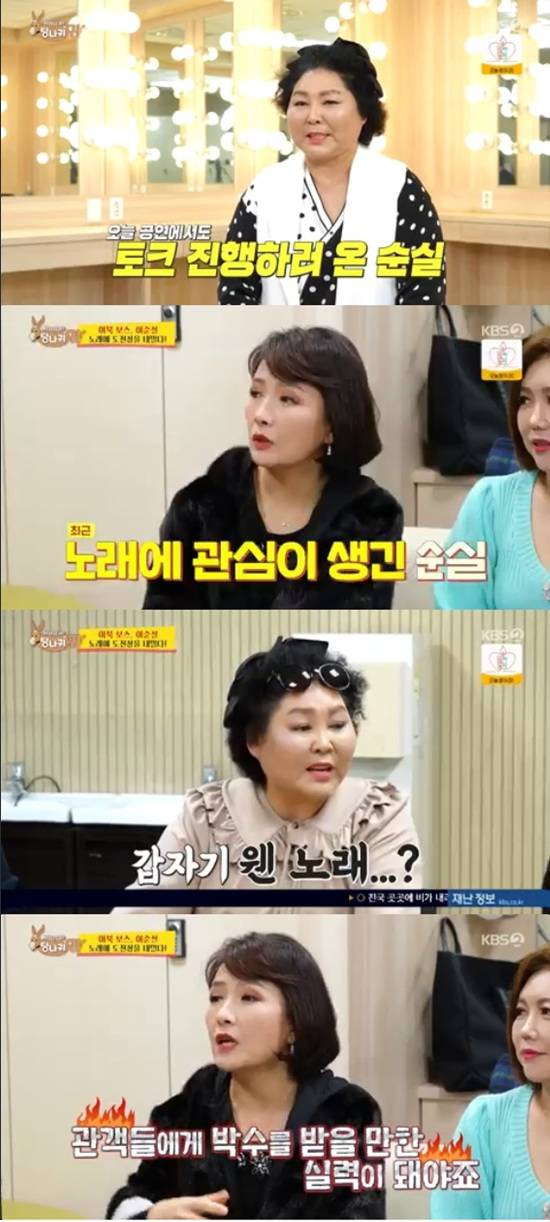 2일 방송된 KBS 2TV '사장님 귀는 당나귀 귀'에서는 이순실이 노래 도전을 선언하는 모습이 전파를 탔다.