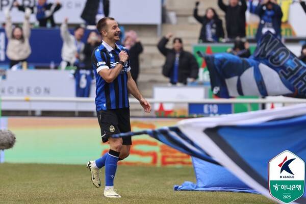 인천 유나이티드는 1일 오후 2시 인천축구전용경기장에서 열린 ‘하나은행 K리그2 2025’ 2라운드에서 수원 삼성을 상대로 2-0 승리를 거뒀다. 퇴장으로 혼란스러운 상황에서 집중력을 잃지 않은 무고사가 1골 1도움으로 팀의 2골에 모두 관여하며 다시 한 번 인천의 에이스임을 증명했다.