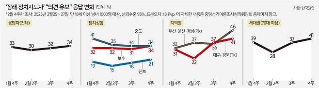 보수층 34% ‘의견 유보’… 진보 21%