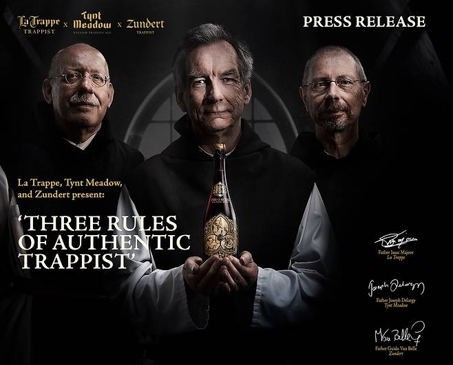 마치 성배를 들고 있는 듯 두 손으로 병을 받치고 있는 틴트 메도우 수도원장 조셉 옆으로 라 트라페 수도원장 이삭과 준데르트 수도원장 귀도는 누구보다 온화한 표정을 짓고 있었다. 흰색 튜닉 위에 검은 색 스카풀라를 걸친 세 수도사의 눈빛에서 라 트라페 140주년 맥주를 향한 강한 형재애가 느껴졌다. 사라져가는 트라피스트 맥주를 지키는 수호자의 굳은 의지와 진심 또한 묻어났다. 이렇게 낭만 터지는 맥주라니.