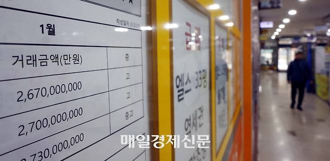 사진은 2일 서울 송파구의 공인중개사무소에 붙은 1월 실거래 가격표.