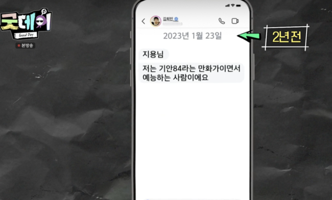 [OSEN= 김수형 기자] ‘굿데이’에서 기안84가 2년 전 지드래곤에게 러브콜한 DM이 공개됐다.