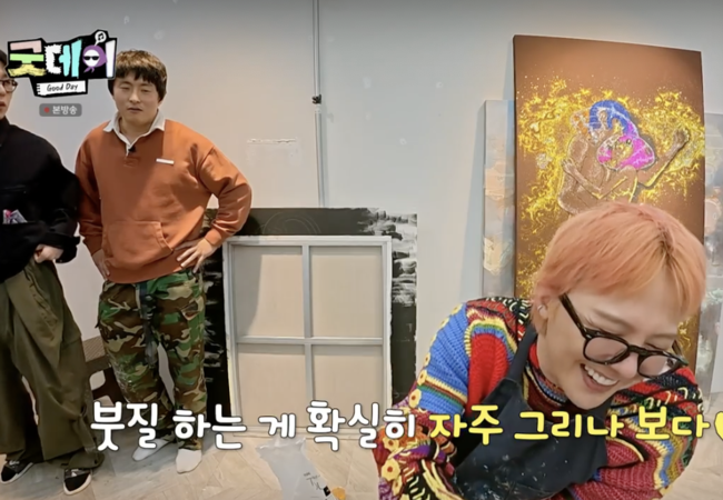 전시도 열 정도로 평소 그림을 잘 그리는 지드래곤. 직접 그림을 그리자 기안84는 “붓질이 다르다”며미술학원 강사 출신인 만큼 주의깊게 바라봤다. 그러더니 “사실 지드래곤 얼굴 많이 그렸다,만화책에 지드래곤과 친구들 넣기도 했다”며