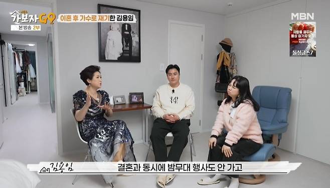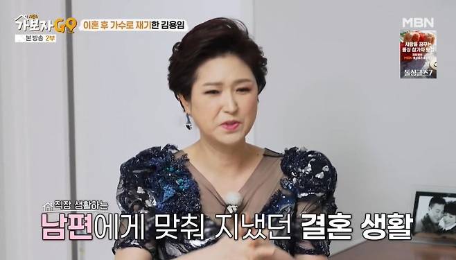 이날 김용임은 이사한 지 3달 된 논현동 집에서 결혼 생활에 대해 밝혔다. 2009년 재혼했다는 김용임은 첫 결혼에 대해 "아기 아빠랑 우연찮게 헤어지게 됐다. 노래를 포기하고 결혼한 건데, 결혼과 동시에 밤무대도 끊었다. 직장 생활하는 분이라 평범하게 지냈다. 그때 당시만 해도 이혼이 큰 흠이라 저 혼자만 끙끙 앓았다. 정말 열심히 살았다. 다시 노래하라고 만들어준 계기가 됐다"고 밝혔다.