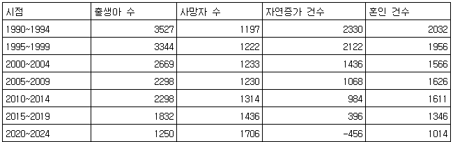[표] 5년 단위 인구동향 (단위: 천명, 천건)