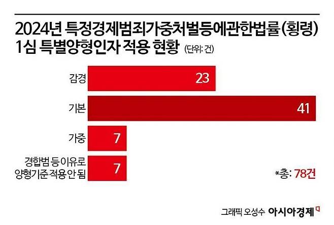 감경된 특별양형인자는 1심 판결 78건 가운데 23건에서 적용됐다. 반면 가중된 특별양형인자가 적용된 경우는 7건이었다. 가장 많은 감경 이유는 '처벌불원 또는 실질적 피해 회복'으로 총 15건이었다. 이어 '실질적 1인 회사 또는 가족회사'가 5건, '자수 또는 내부비리 고발'이 2건. '오로지 회사 이익만을 위한 경우' 1건 등이었다. 횡령 등 범죄 피해가 사실상 회복됐거나 가해자와 피해자가 합의했다고 재판부는 판단한 셈이다. 가중 처벌된 경우 7건 모두 사유가 불량한 범행 수법이었다. 여기서 불량한 범행 수법에는 사문서 및 공문서 위조, 오랫동안 지속된 범죄 등이 포함된다.