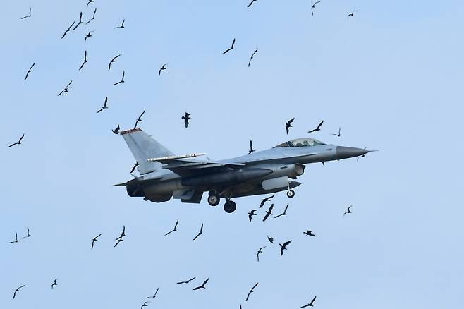 | ▲ 2021년 10월 7일, 수라갯벌 상공에서 군산공항으로 가던 F16 전투기가 민물가마우지 떼와 충돌했다. |