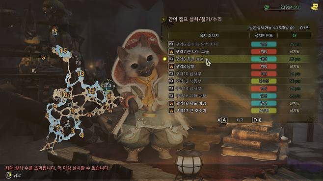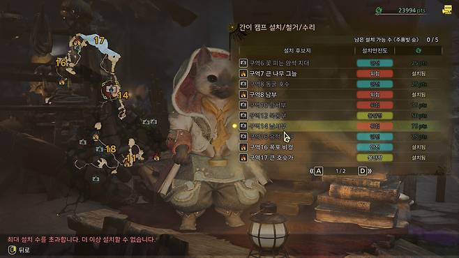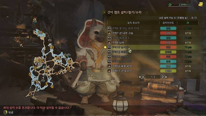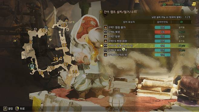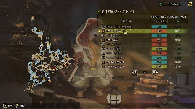 편하게 위치를 찾을 수 있도록 5개 맵에 존재하는 46개 캠프 설치 후보지 위치를 모두 정리했다.