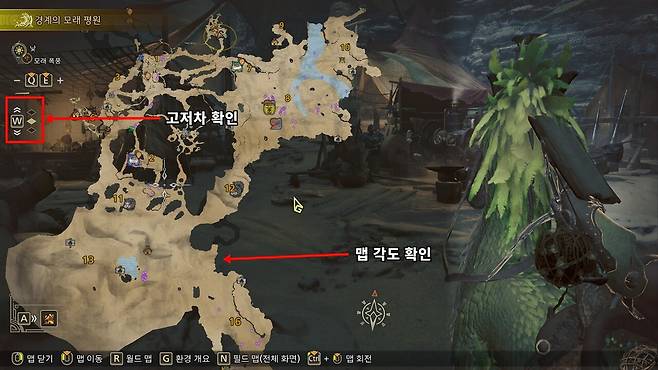 ◎ 월드맵을 열고 맵 각도를 맞춘 뒤 확인하는 것을 추천