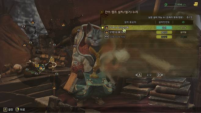 세크레트라는 편리한 이동 수단이 생기긴했지만 간이 캠프를 적절히 활용한다면 빠른 재정비, 더욱 편안하게 재료 채집 및 몬스터를 조우하는 등 장점이 많다. 한 번 발견만 해둬도 언제든지 철거와 재설치를 할 수 있기 때문에 시간이 된다면 한 번쯤 모든 맵을 돌아다니며 찾아두길 추천한다.