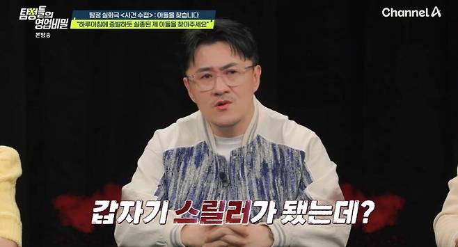 3일 방송된 채널A 예능 프로그램 '탐정들의 영업비밀'에서는 탐정 실화극 '사건수첩-아들을 찾습니다'의 사연이 공개됐다.