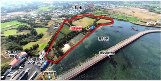 해양치유센터가 들어서는 성산읍 시흥리 일대(사진)는 제주올레의 시작점인 1코스가 지나는 명소다. 유네스코 세계자연유산인 성산일출봉과는 3㎞ 거리여서 도보로 이동이 가능하다. 일출봉이 위치한 천혜의 해안 풍광을 보면서 힐링을 할 수 있다는 의미다.