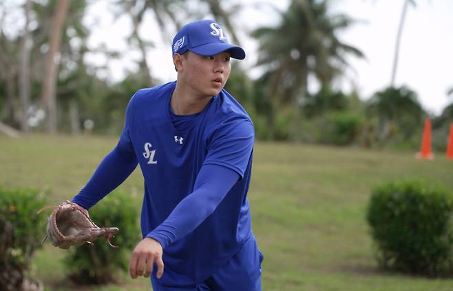 그만큼 몸을 잘 만들어 캠프에 왔다. 한눈에 봐도 몸이 다부지다. 상하체 밸런스가 좋고, 가슴도 두툼하다. 큰 키가 아니지만 균형 있는 탄탄한 근력의 소유자인 오승환, 김택연과 흡사하다. 힘을 쓸 수 있는 몸이다.
