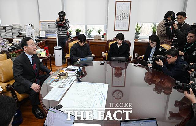 [더팩트ㅣ국회=박헌우 기자] 주호영 국민의힘 헌법개정특별위원회 위원장이 4일 오후 서울 여의도 국회에서 헌법개정특별위원회 출범 관련 기자간담회를 열고 발언하고 있다.