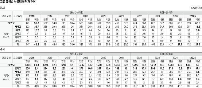 [2025학년도 대입 전략] 일반고 서울대 합격, 2015년 51% → 2024년 64%…자사고 18%로 '반토막'…특정 고교 유리한 점 없어