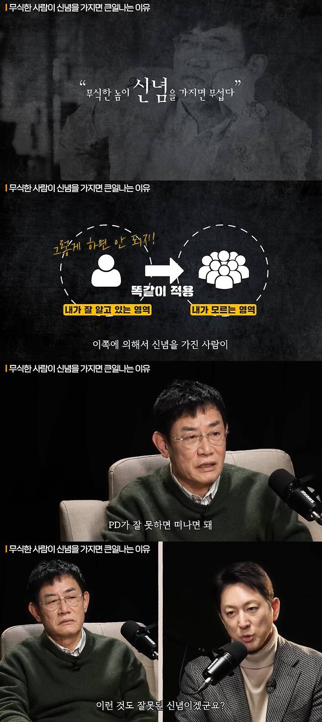 [스포츠조선닷컴 박아람 기자] 코미디언 대부 이경규가 무식한 사람이 신념을 가지면 큰일나는 이유를 설명했다.