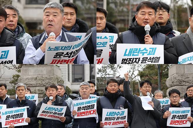 양대노총은 기자회견을 통해 "윤 대통령은 그간 노동조합 탄압·파업 및 집회 불법화·노동자 권리 말살 등 헌법이 보장하는 노동권을 철저하게 짓밟았다"면서, "헌법재판소는 노동자·시민들의 명령을 받아들여 노동·민주를 말살하려 한 윤 대통령을 즉각 파면하라"고 촉구했다.