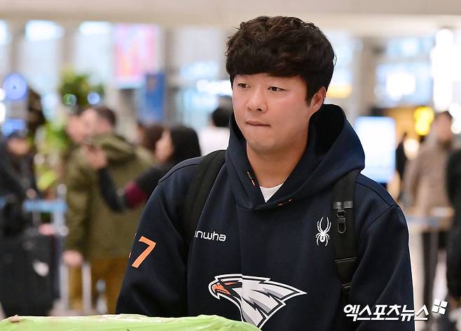 입국장을 빠져나오는 한화 김범수.