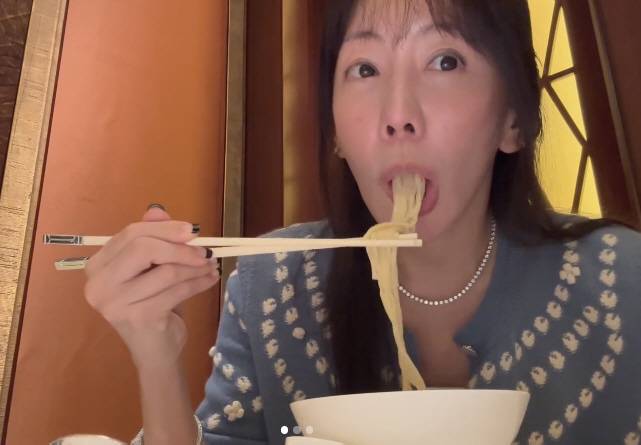 4일 김정은은 "생일 국수는 끊지말구 먹으라구요..?"라며 긴 국수를 끊지 않고 먹는 먹방을 선보였다.