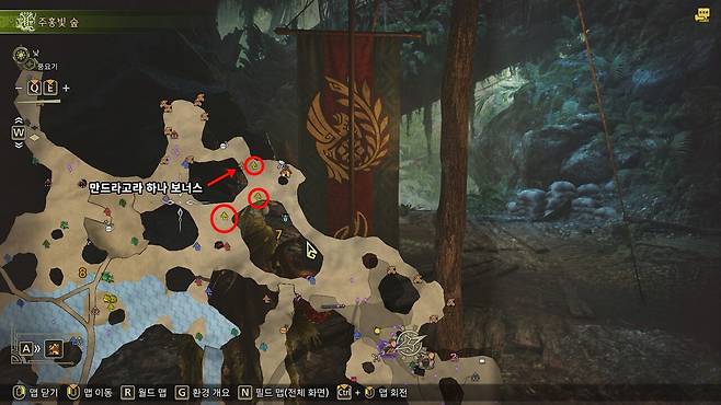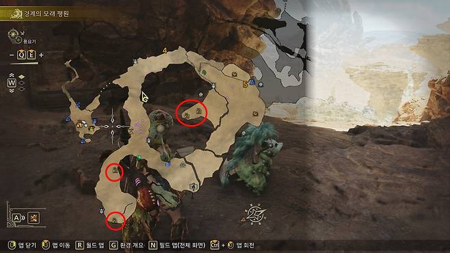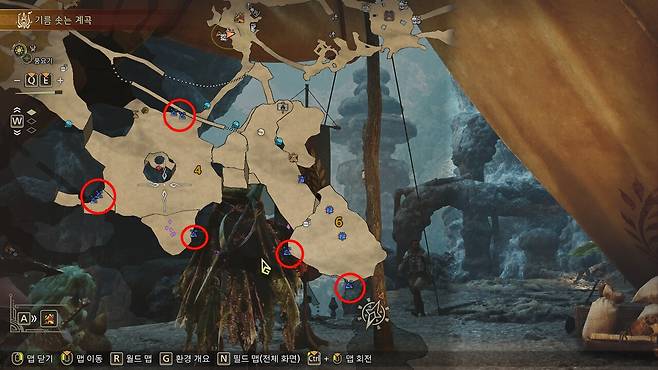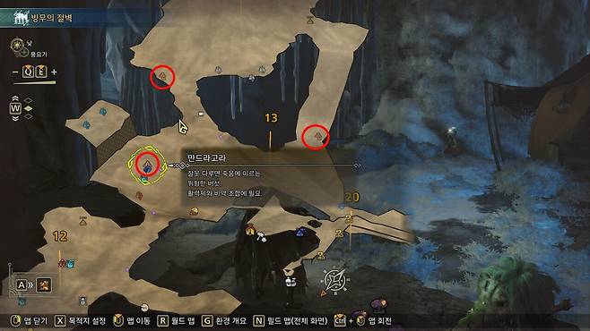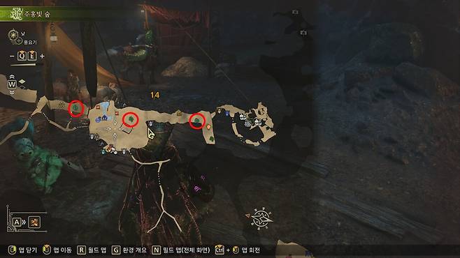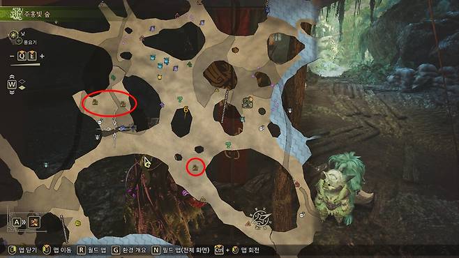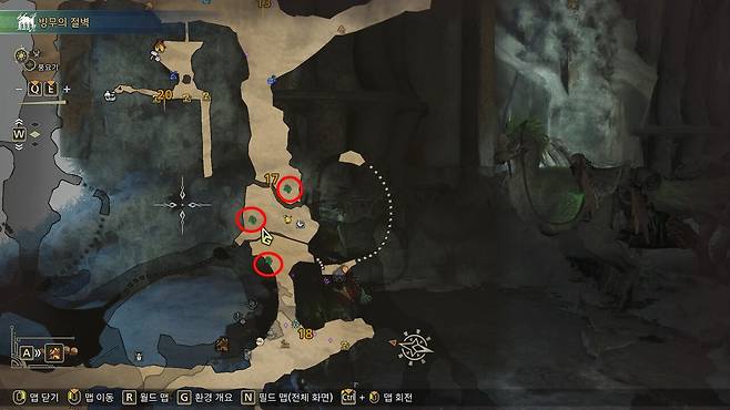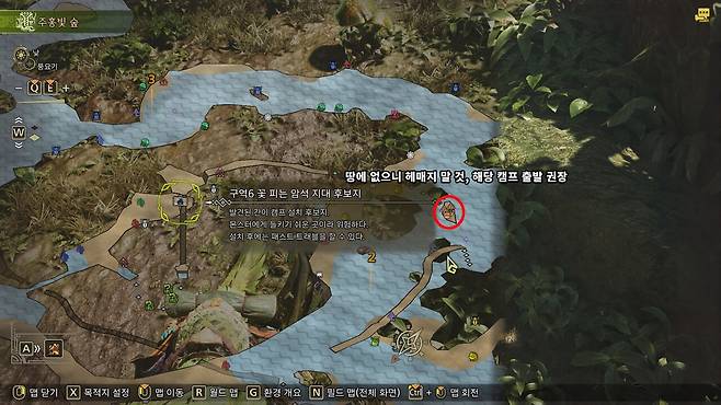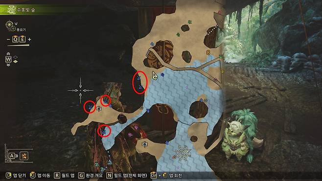 그러나 재료는 많으면 많을수록 좋다. 초보라면 트라이 실패도 많고 클리어 시간도 오래 걸리니 소모품 소비량도 더 많다. 원활한 소모품 파밍을 돕기 위해 약초와 버섯, 벌꿀, 뼈나 광맥 등 특정 위치에 뭉쳐 있어 파밍이 원활한 위치를 엄선해 봤다. 오랜 사냥에 지쳐 힐링하는 느낌으로 아이템을 파밍하고 싶다면 추천한다.