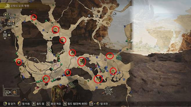 ① 월드맵에서 아이콘 필터를 활용해 원하는 소재를 찾을 수 있다