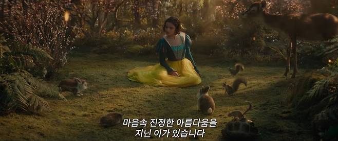 또 하나 중요한 원작의 설정이 있죠. '세상에서 제일 아름다운 사람'을 알려주던 여왕의 거울입니다. 이전까진 자신을 세상에서 제일 아름답다 말하던 거울의 답변이 바뀐 뒤로, 여왕이 질투에 사로잡히게 된다는 것이 모두가 아는 원작 속 갈등의 시작입니다. 그런데 실사 영화에선 거울이 '가장 아름다운 사람'을 알려주는 대신 '마음 속 진정한 아름다움을 지닌 이'를 비춥니다. 이제 더 이상 '세상에서 제일 가는 외모의 아름다움'을 상상하지 않아도 되겠군요.